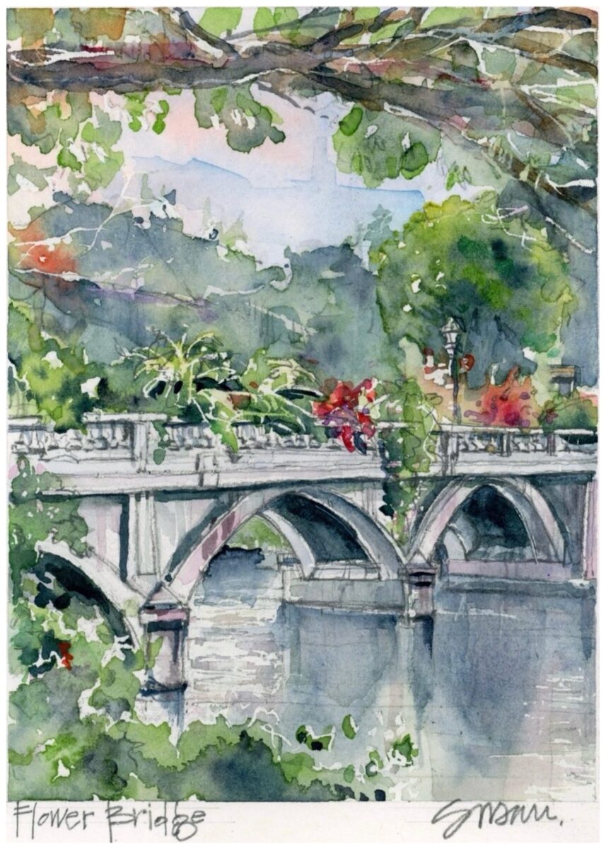 Susan Hensey Flowering Bridge Watercolor
